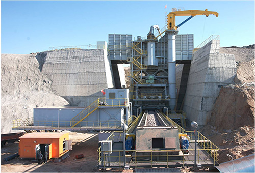 半移动旋回式破碎站为半连续开采����� �������Ƴ����������� �������Ƴ������������ �������Ƴ������������ �������Ƴ�������工艺(单斗挖掘机—汽车—破碎站—带式输送机系统����� �������Ƴ������������ �������Ƴ������������ �������Ƴ������������ �������Ƴ�������)中的关键设备,用于大型露天金属矿����� �������Ƴ������������ �������Ƴ������������ �������Ƴ������������ �������Ƴ�������山矿石或岩石的初级破碎,将����� �������Ƴ������������ �������Ƴ������������ �������Ƴ������������ �������Ƴ�������爆破或挖掘后的大块物料通过破碎机破碎����� �������Ƴ������������ �������Ƴ������������ �������Ƴ������������ �������Ƴ�������成满足胶带机运输的粒度。