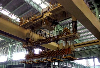 电磁挂梁起重机用于在连轧车间生产线,将泵品钢板����� �������Ƴ������������ �������Ƴ������������ �������Ƴ������������ �������Ƴ�������、方坯、型钢等从辊道搬运����� �������Ƴ������������ �������Ƴ������������ �������Ƴ������������ �������Ƴ�������至垛集台,在成品库装卸车����� �������Ƴ������������ �������Ƴ������������ �������Ƴ������������ �������Ƴ�������辆作业或进行堆集作业,搬运的钢坯温度一般在6����� �������Ƴ������������ �������Ƴ������������ �������Ƴ������������ �������Ƴ�������50℃以下。